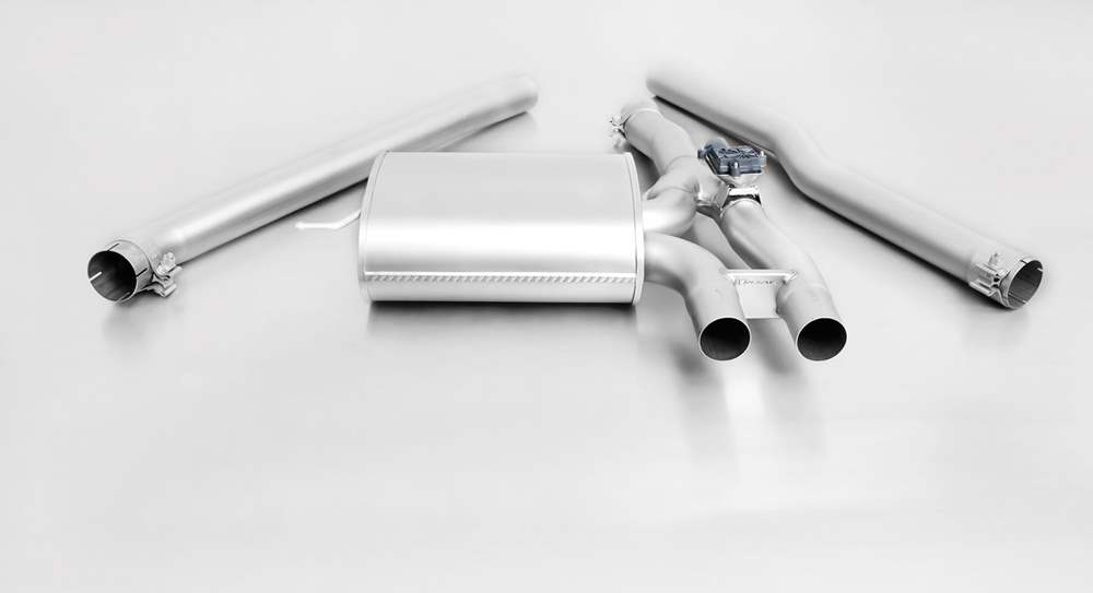 Remus Non-Resonated Cat back system with 2 tail pipes 98 mm Black Chrome, straight, carbon insert for Mini F56 3 Door Hatch Cooper S (2.0 Turbo) (2014-2018)