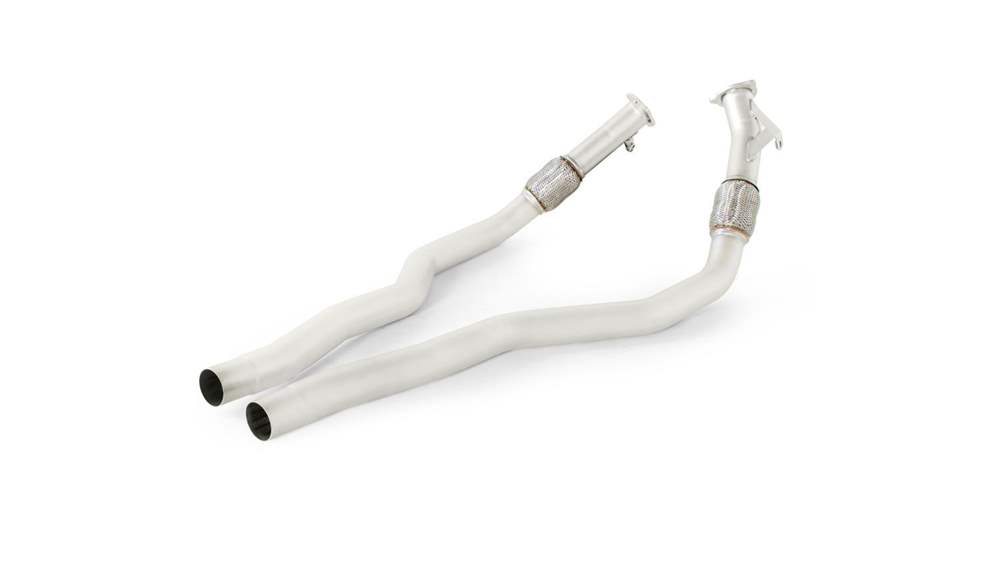 Remus Non-Resonated Downpipe back system with 4 tail pipes 84 mm angled, rolled edge, chromed for Audi A4 B9 Avant (RS4 2.9 V6 Biturbo) (2017-2018)