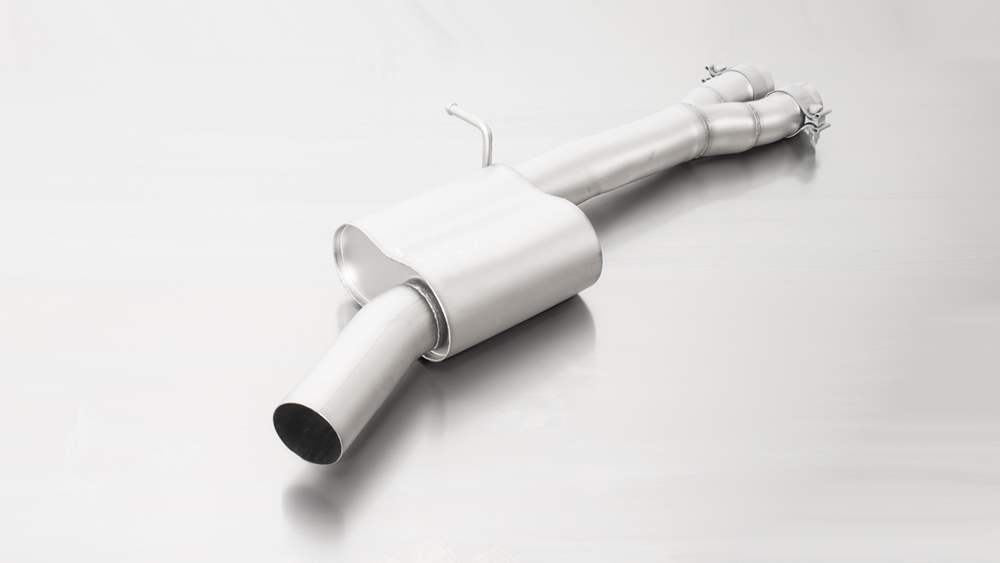 Remus Resonated Cat back system with 4 tail pipes 84 mm angled, rolled edge, chromed for Audi A3 8VS Saloon Facelift (RS3 2.5 TFSI) (2017-2018)